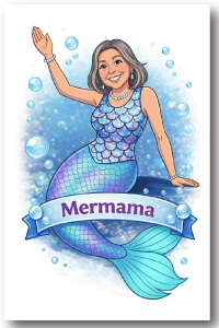 As Mermama, the Grotto Mother, I create a space of care, wonder, and connection where all feel welcomed and inspired by the ocean’s beauty and spirituality. Through a playful spirit of kindness, excitement, and mermaid magic, I nurture joy while fostering a deeper respect for the quiet, weightless world beneath the waves.